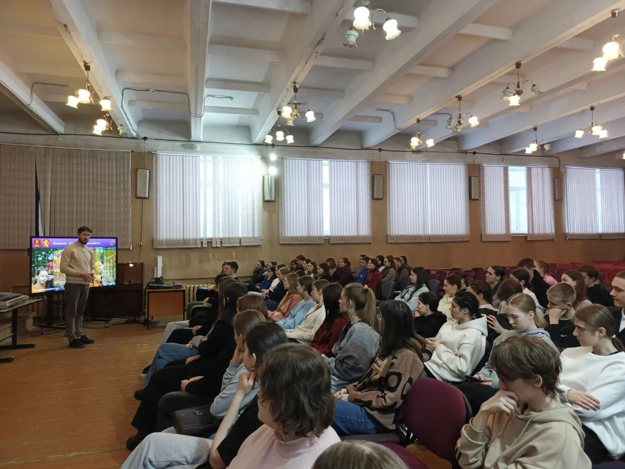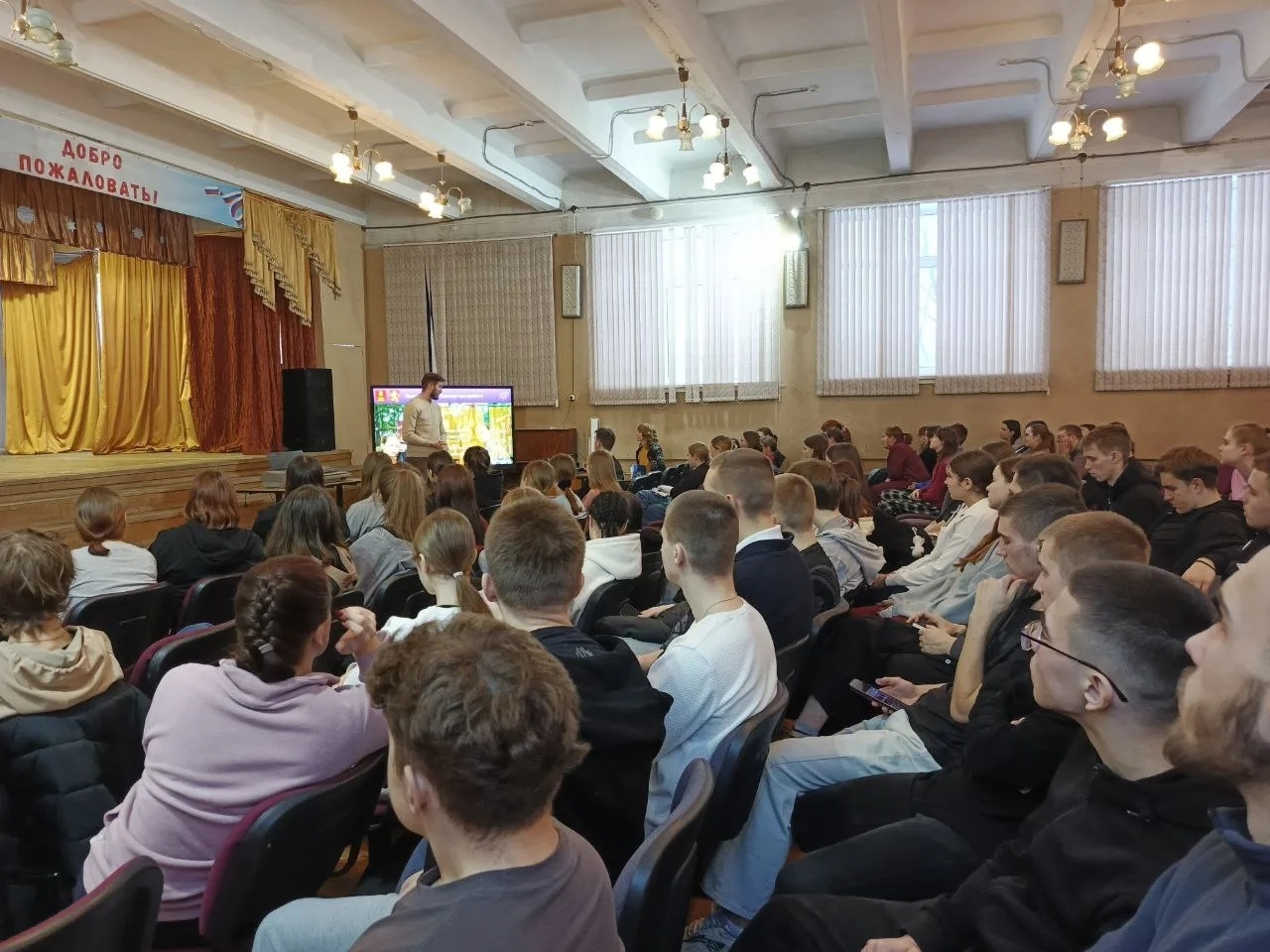 21.01.2026г. перед студентами выступили начальник управления и молодежной политики администрации Ржевского муниципального округа Иноземцева И.А. и директор загородного лагеря ЗАРНИЦА Колосов П.В.